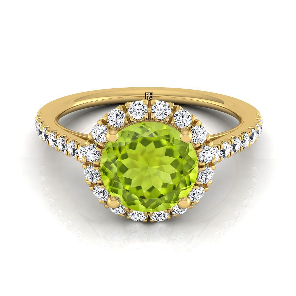 แหวนหมั้นเพชรฝรั่งเศสแบบปาเว่รูปวงกลมประดับเพอริดอตขนาดเล็กทองคำเหลือง 18K น้ำหนักรวม 3/8 กะรัต
