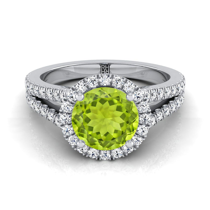 แหวนหมั้นทองคำขาว 14K ประดับเพอริดอตทรงกลมเจียระไนแบบบริลเลียนต์ล้อมด้วยเพชรฝรั่งเศสแบบแยกชิ้น - 3/8ctw