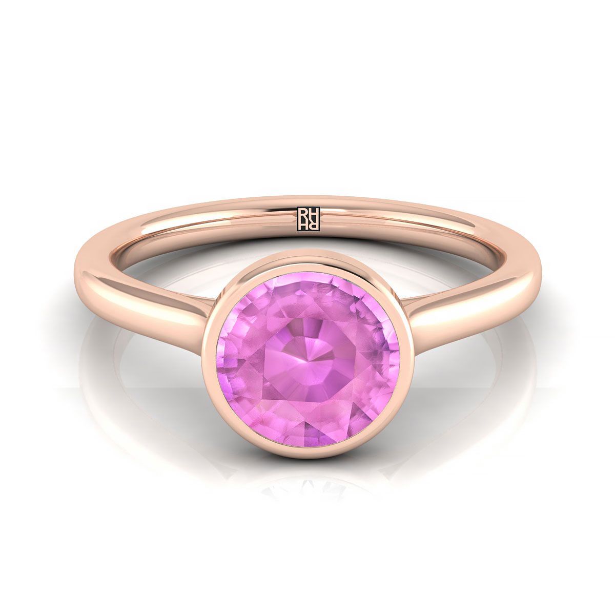 แหวนหมั้นแบบโซลิแทร์เม็ดเดี่ยวขอบเรียบเรียบง่ายประดับแซฟไฟร์สีชมพูทรงกลมเจียระไนแบบบริลเลียนต์ทองกุหลาบ 14K