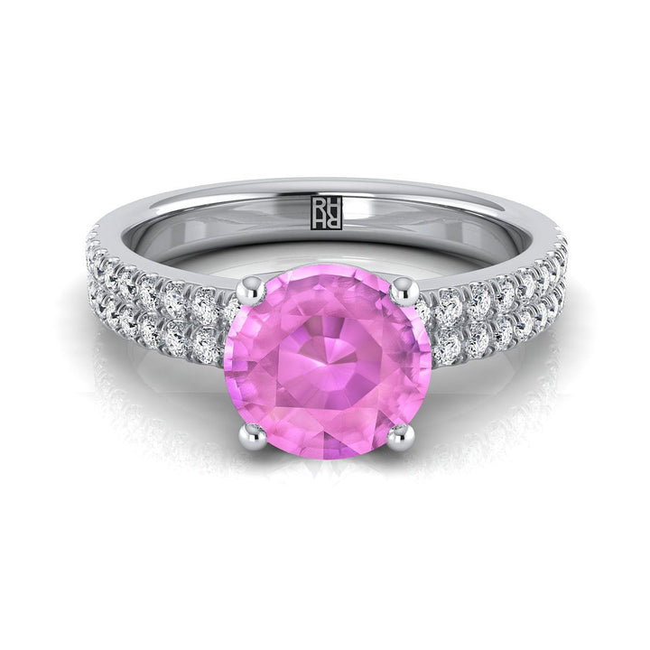 แหวนหมั้นแถวเพชรคู่แบบปาเว่ประดับแซฟไฟร์สีชมพูทรงกลมเจียระไนแบบบริลเลียนท์แพลทินัม - 1/4ctw