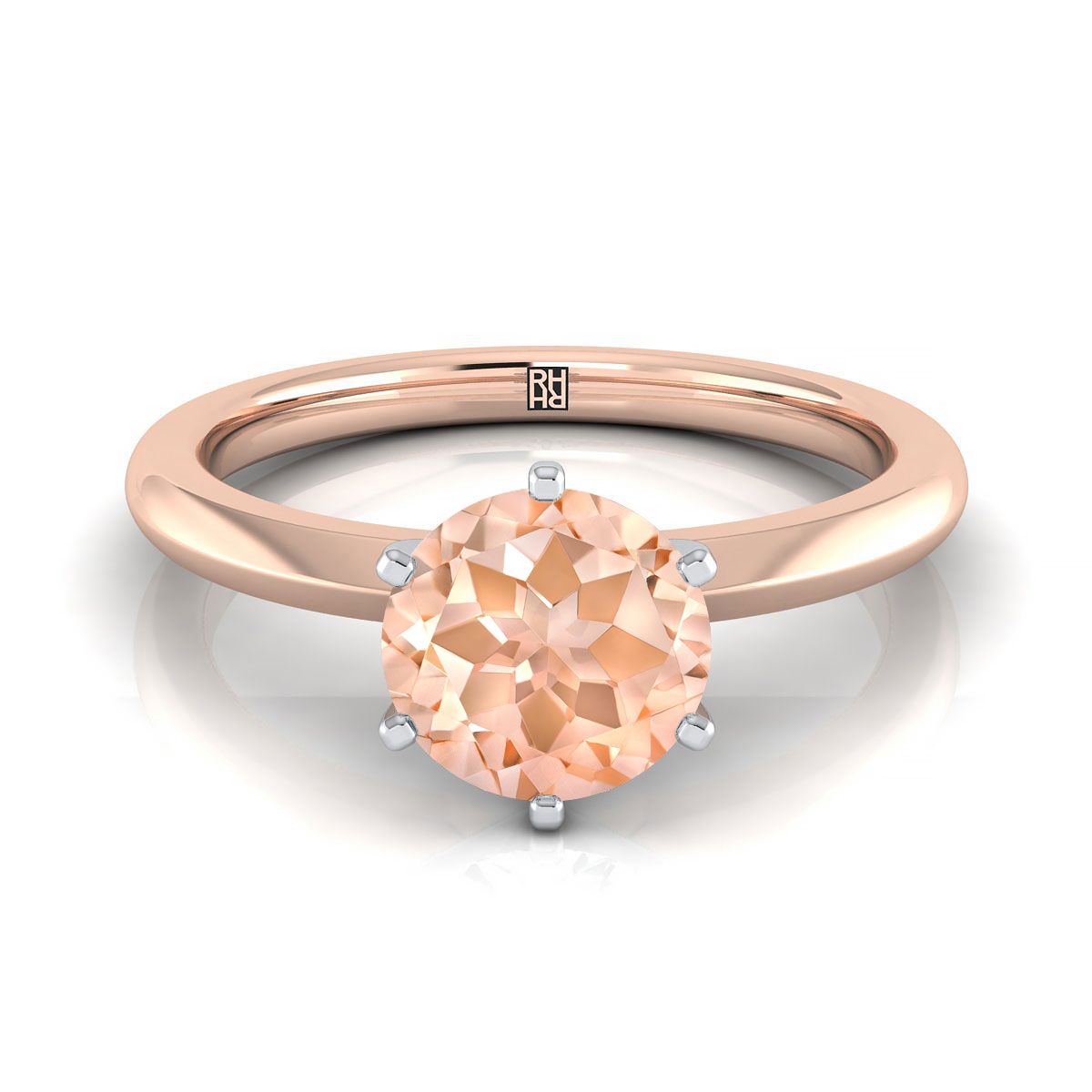แหวนหมั้นเดี่ยวเม็ดเดี่ยวมอร์แกไนต์ทรงกลมเจียระไนแบบ Brilliant สีโรสโกลด์ 14K ดีไซน์หนีบแบบสวมใส่สบายด้วยก้ามปู
