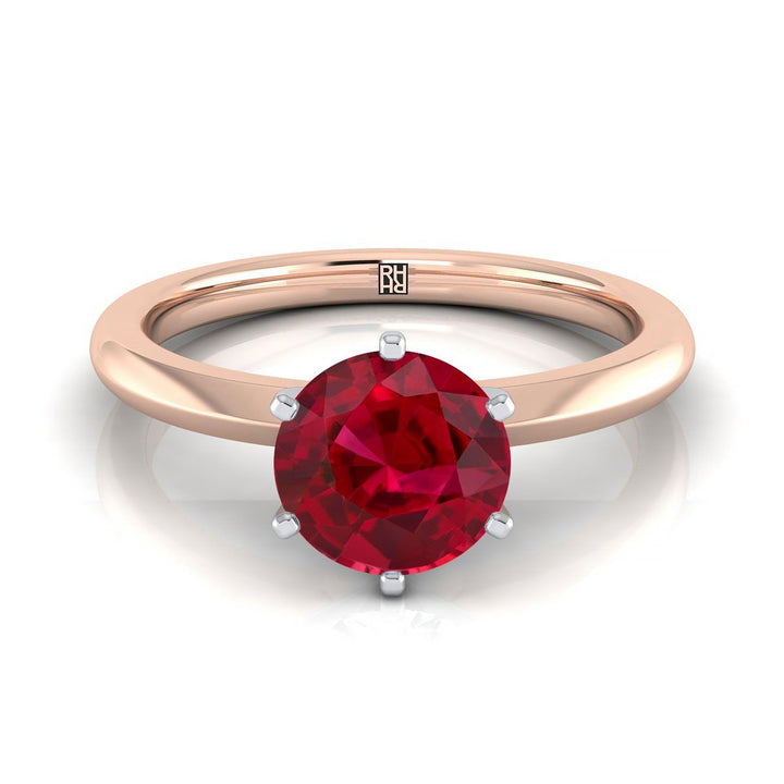 แหวนหมั้นเดี่ยวแบบหนีบด้วยกรงเล็บทรงกลมเจียระไนแบบ Brilliant ทับทิมทองกุหลาบ 14K แบบสวมใส่สบาย