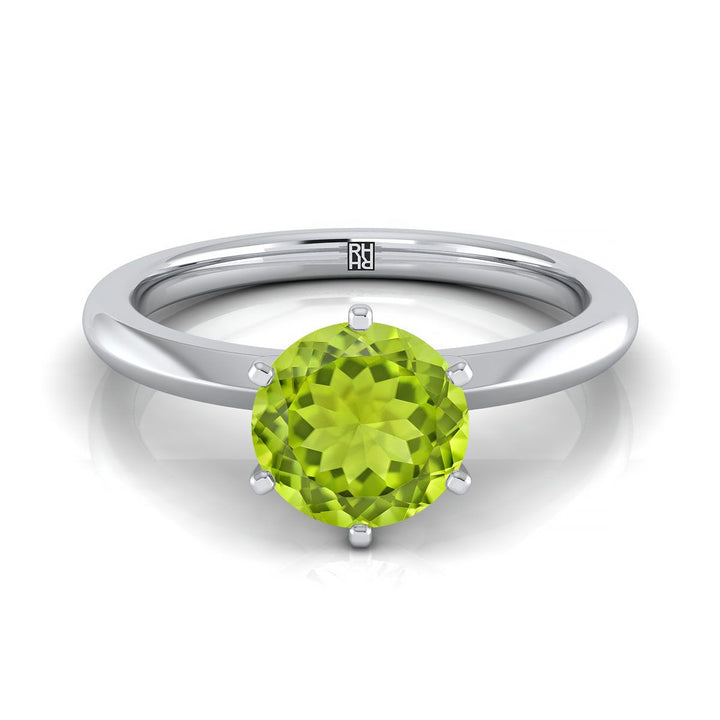 แหวนหมั้นทองคำขาว 18k พร้อมเพชรเพอริดอตทรงกลมขนาด 6 มม. ที่ศูนย์ และดีไซน์ขอบมีดสมัยใหม่ พร้อมการตั้งหกกรง