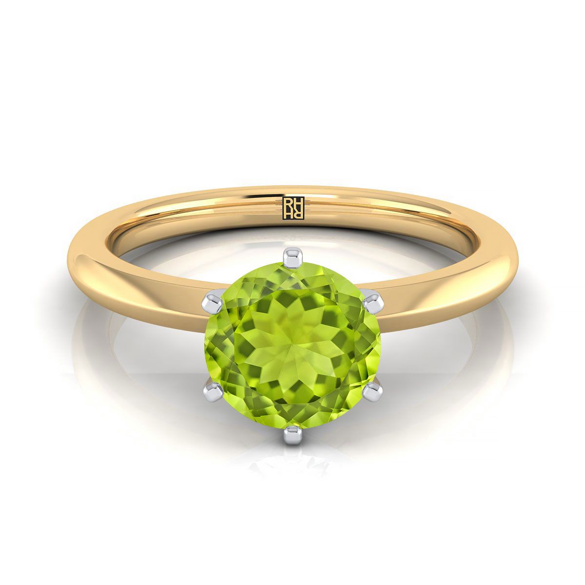 แหวนหมั้นทองคำเหลือง 18k พร้อมเพชรเพอริดอตทรงกลมขนาด 6 มม. ที่ศูนย์กลาง และขอบแหวนสไตล์มีดสมัยใหม่ พร้อมการตั้งหกก้าน