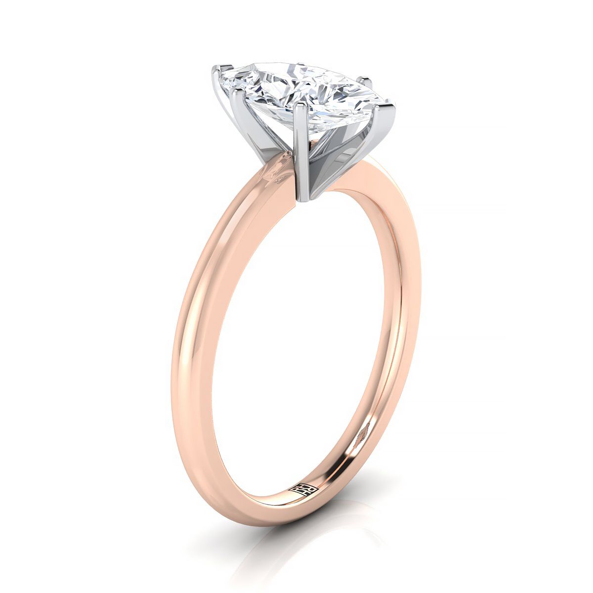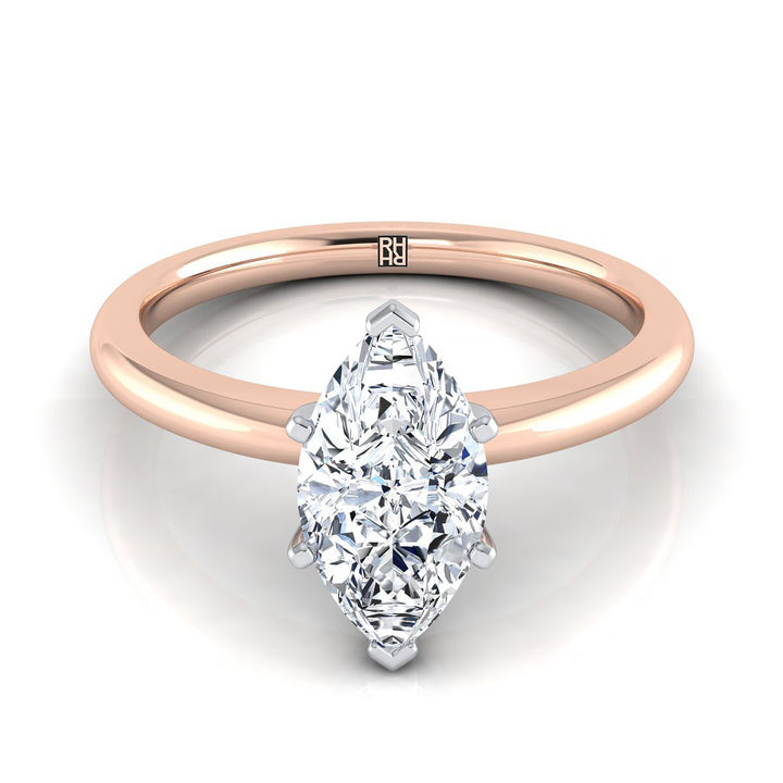 แถลงการณ์คลาสสิกของสไตล์ แหวนหมั้นมาร์คีสโซลิแทร์นี้มีการออกแบบที่โค้งมนและการตั้งศูนย์ 6 ขาในทองคำกุหลาบ 14k