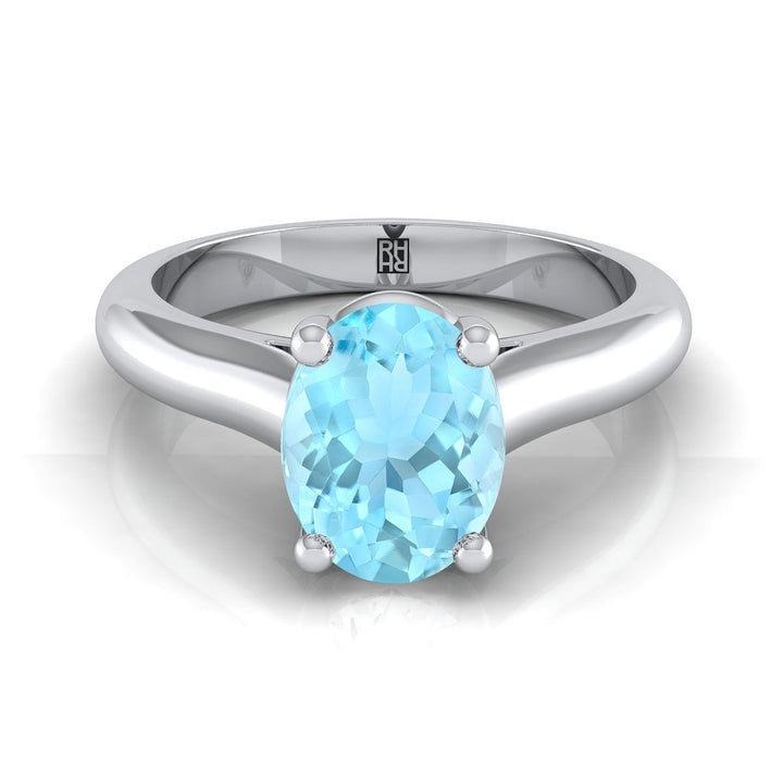 แหวนหมั้นทองคำขาว 14k พร้อมอัญมณีอะความารีนรูปไข่ขนาด 8 x 6 มม. ที่ศูนย์กลาง และการตั้งแบบวิหาร พร้อมก้านแหวนครึ่งวงกลม
