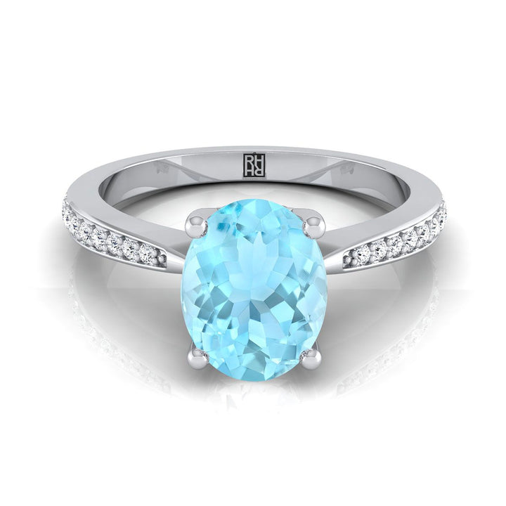 แหวนหมั้นเพชรแบบปูด้วยเพชรทรงรีแพลทินัมอะความารีนทรงเรียว - 1/8ctw