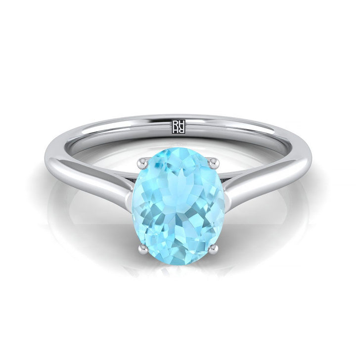 แหวนหมั้นเดี่ยวสไตล์วิหารรูปวงรีพลาตินัมอความารีนแบบสวมใส่สบาย