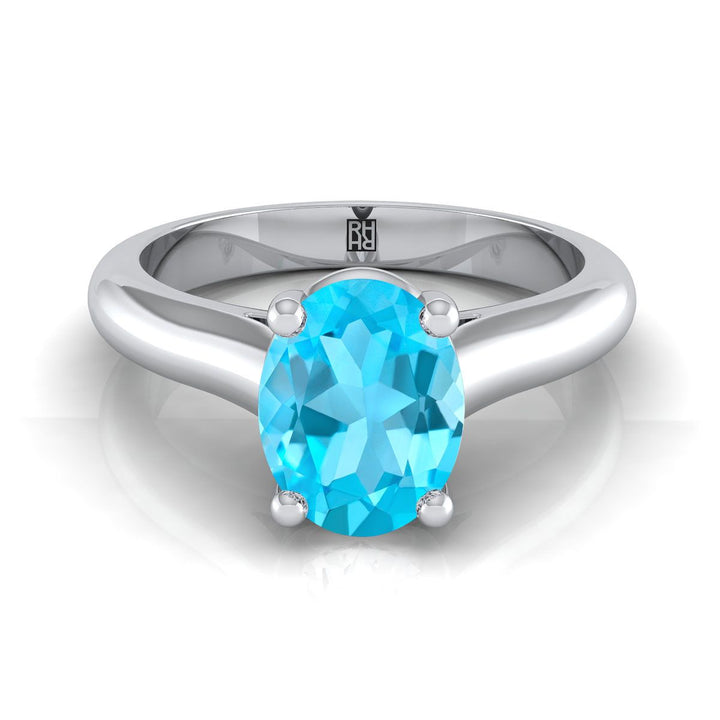 แหวนหมั้นทองคำขาว 14k พร้อมพลอยทับทิมสีน้ำเงินรูปไข่ขนาด 8 x 6 มม. ตรงกลาง และการตั้งแบบวิหาร พร้อมก้านแหวนครึ่งวงกลม