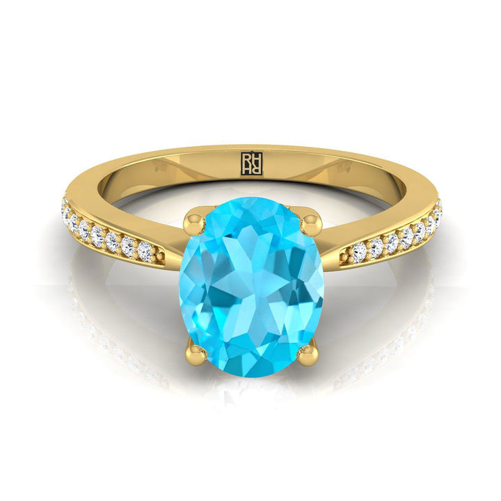 แหวนหมั้นเพชรแบบปาเว่ทรงรีสีฟ้าสวิส ทองคำเหลือง 18K - 1/8ctw