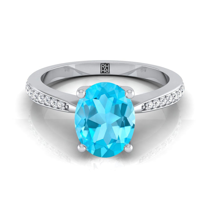 แหวนหมั้นเพชรแบบปูเรียวรูปไข่แพลทินัมประดับทับทิมสวิสสีน้ำเงิน