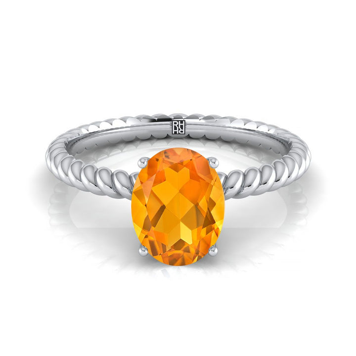 แหวนหมั้นทองคำขาว 18k พร้อมเพชรซิทรินทรงรีขนาด 8 x 6 มม. ที่ศูนย์กลาง และดีไซน์เชือกที่ก้านแหวน