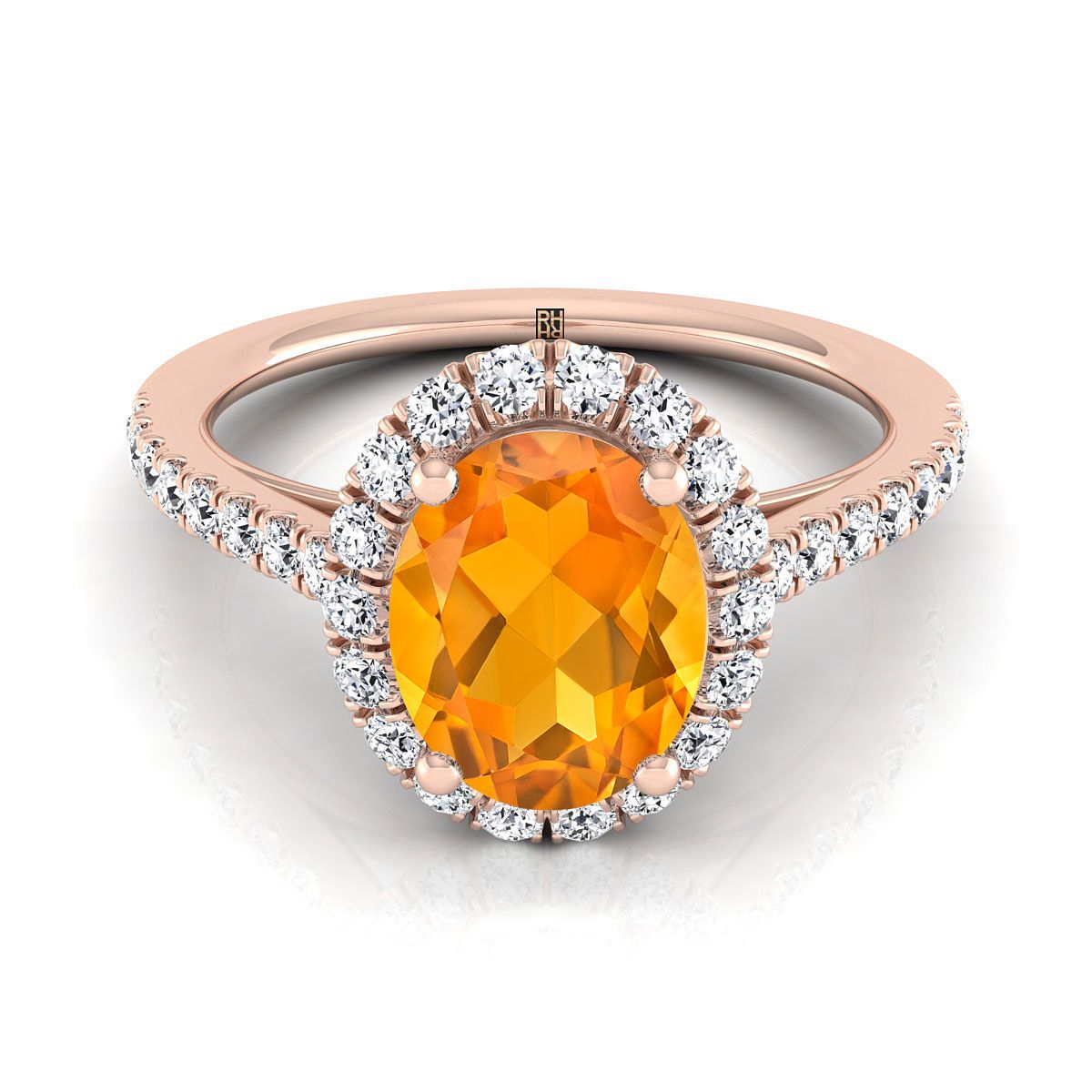 แหวนหมั้นเพชรฝรั่งเศสแบบปาเว่รูปวงรีซิทรินขนาดเล็ก 14K ทองกุหลาบ