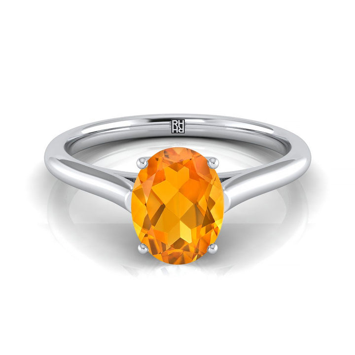 แหวนหมั้นเดี่ยวทรงโบสถ์แบบสวมใส่สบายประดับซิทรินรูปไข่ทองคำขาว 14K
