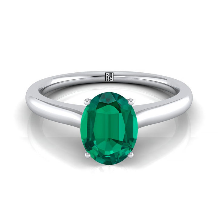 แหวนหมั้นทองคำขาว 14k พร้อมเพชรทรงรีขนาด 8 x 6 มม. ตรงกลางเป็นมรกต และดีไซน์แหวนแบบขอบล้อม