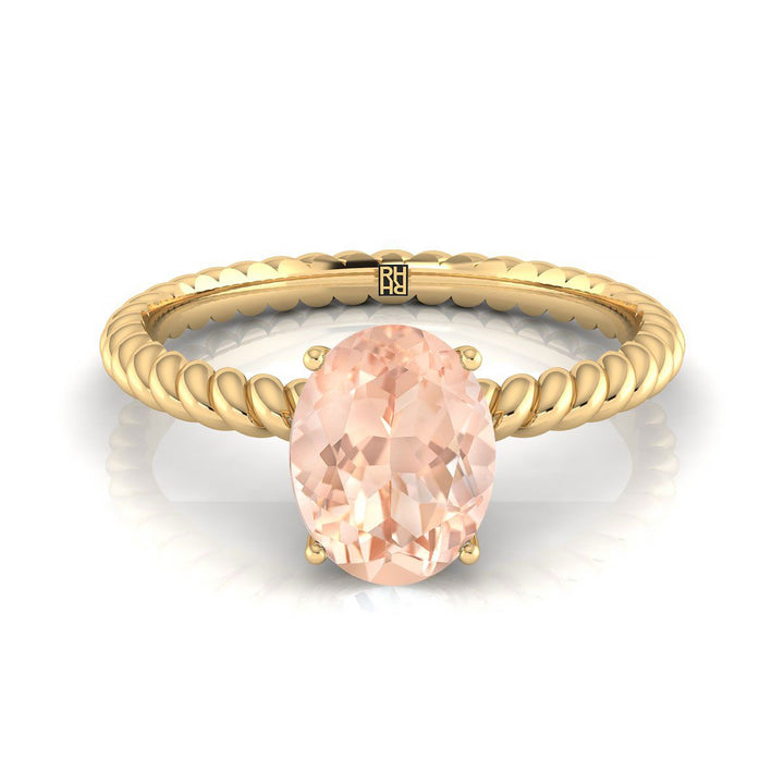 แหวนหมั้นทองคำเหลือง 14K รูปไข่ มอร์กาไนต์ ลายเชือกบิดเดี่ยว พร้อมเพชรเซอร์ไพรส์