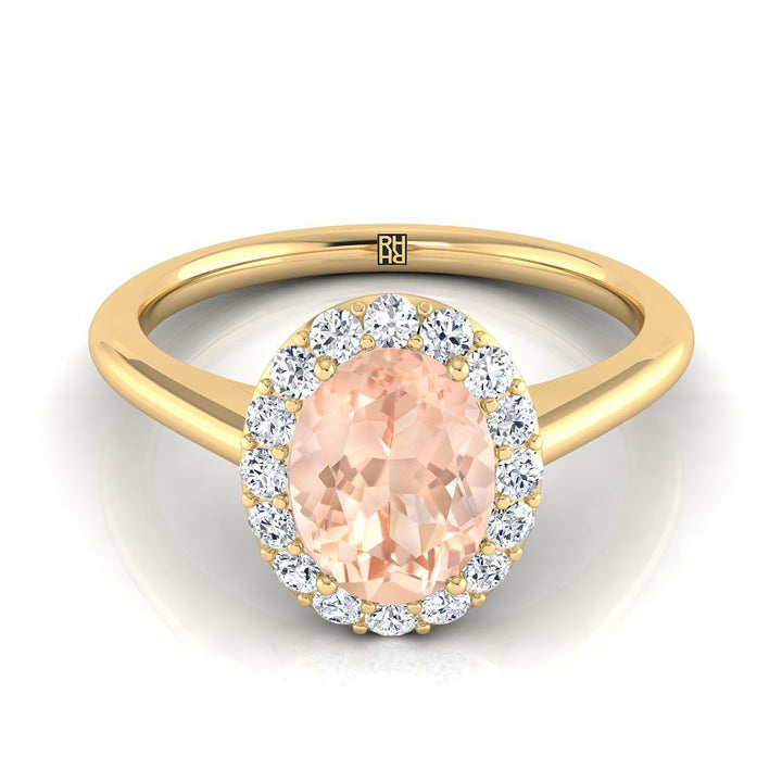 แหวนหมั้นทองคำเหลือง 18K รูปไข่ มอร์แกไนต์ พร้อมเพชรล้อมแบบหนีบร่วม - 1/5 กะรัตรวม