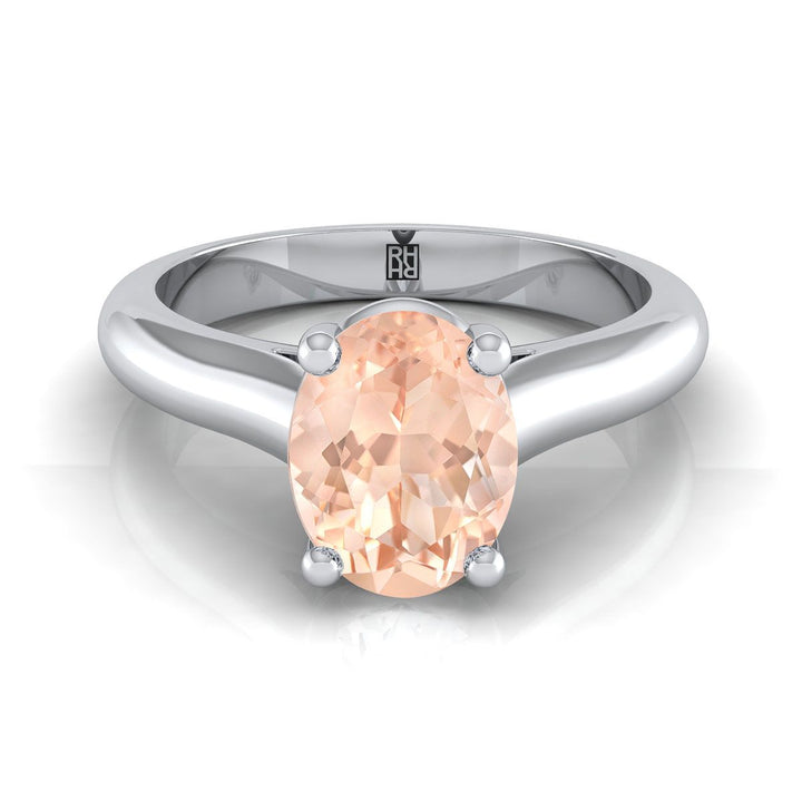 แหวนหมั้นเดี่ยวแบบหนีบด้วยกรงเล็บทรงวงรีมอร์แกไนต์ทองคำขาว 14K แบบสวมใส่สบาย