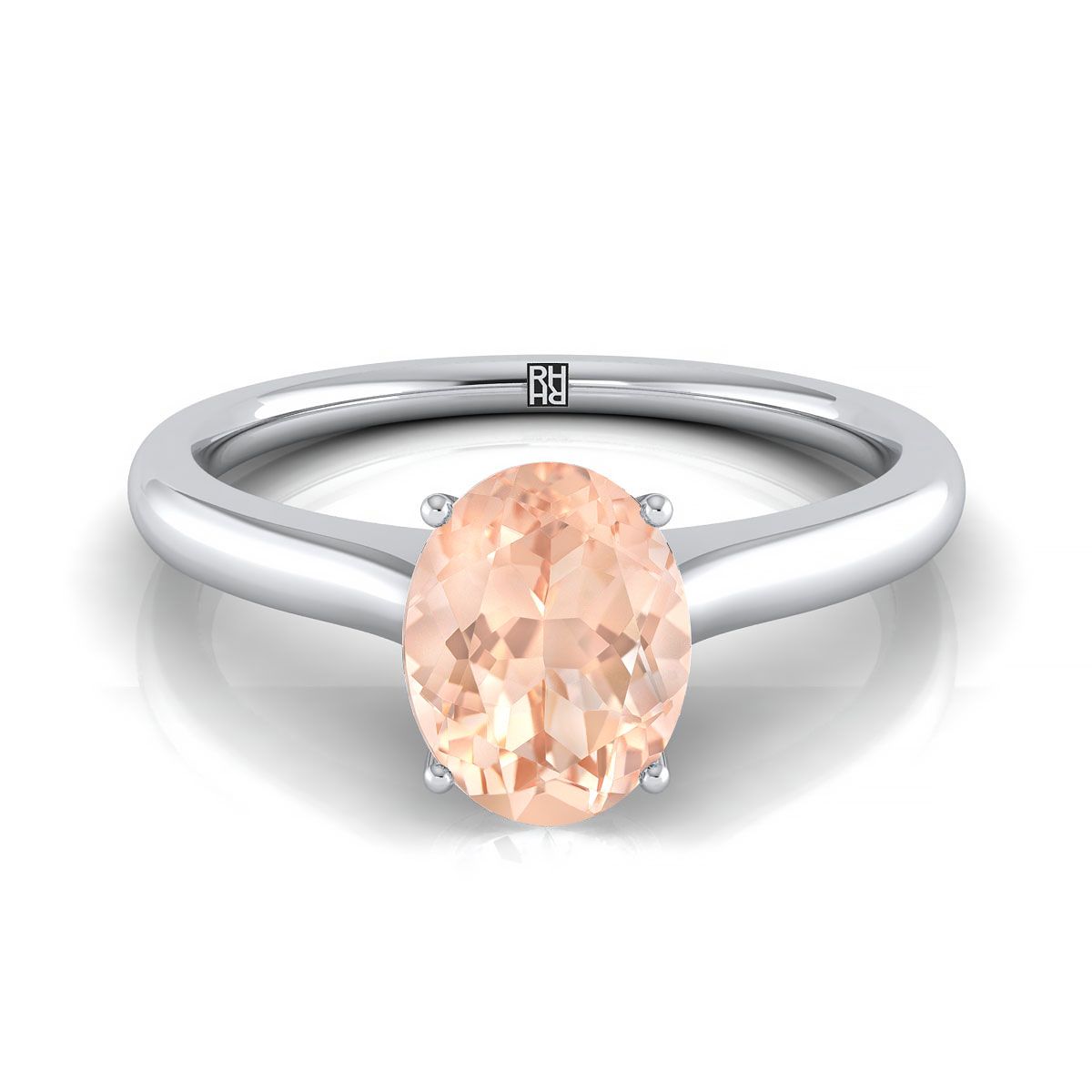 แหวนหมั้นทองคำขาว 14k พร้อมเพชรโมแกไนต์ทรงรีขนาด 8 x 6 มม. ที่ศูนย์ และดีไซน์แหวนแบบขอบรอบตัวเรือน