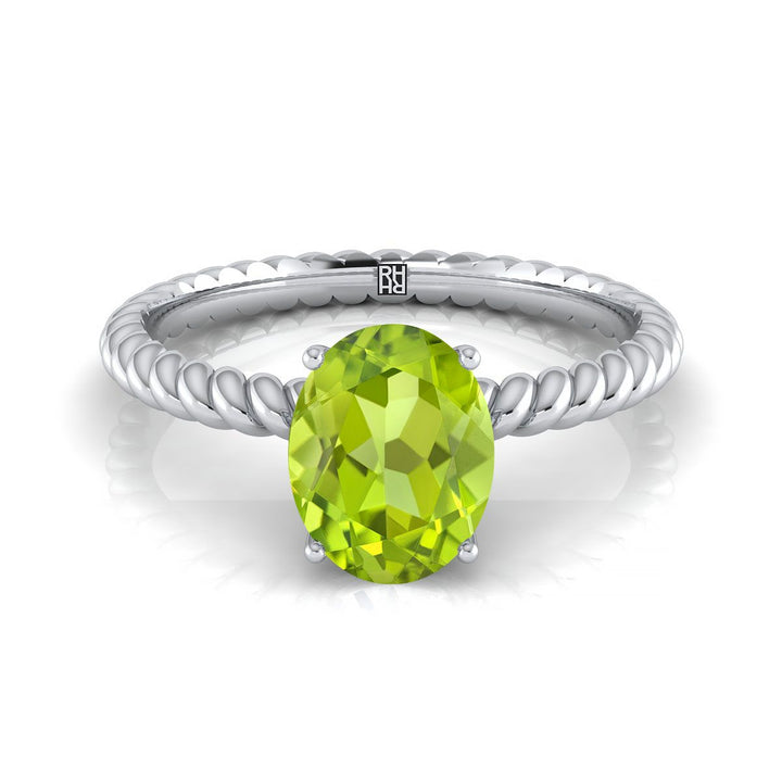 แหวนหมั้นเพชรเซอร์ไพรส์แบบโซลิแทร์เชือกบิดรูปไข่เพอริดอตทองคำขาว 18K