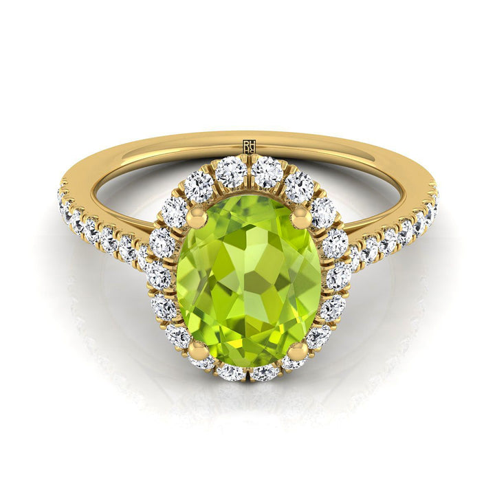 แหวนหมั้นเพชรฝรั่งเศสแบบพาเว่ทรงวงรีเพอริดอตขนาดเล็ก 14K ทองคำเหลือง - 3/8ctw