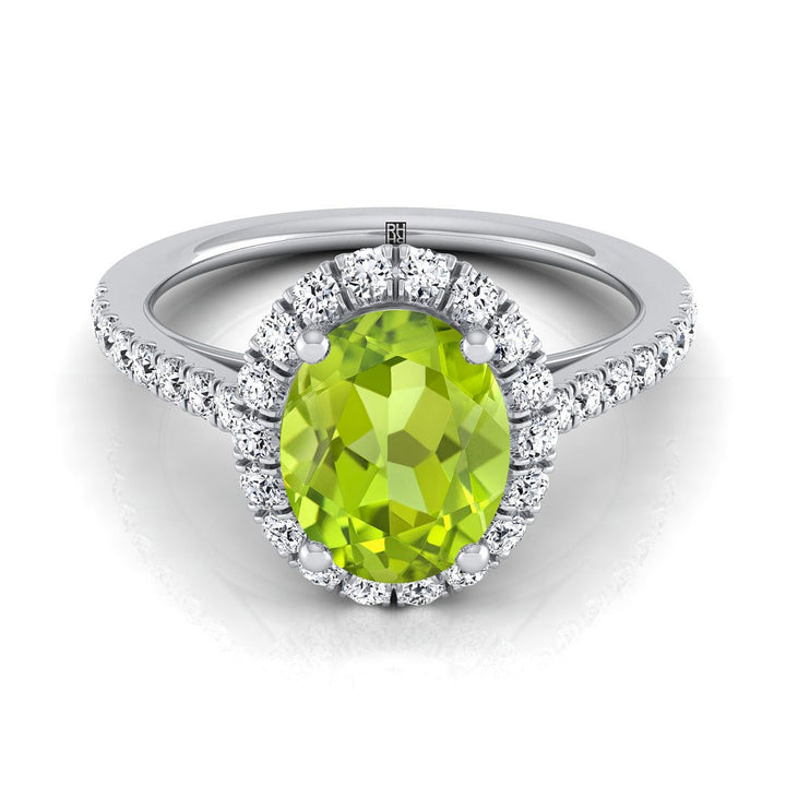 แหวนหมั้นเพชรฝรั่งเศสแบบปาเว่รูปวงรีเพอริดอตขนาดเล็กทองคำขาว 18K - 3/8ctw