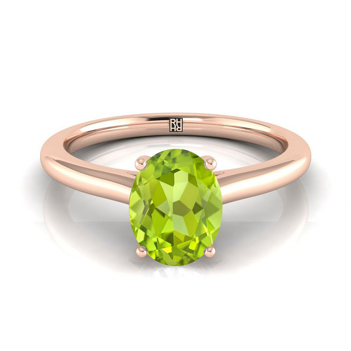 แหวนหมั้นเดี่ยวแบบหนีบด้วยกรงเล็บรูปวงรีเพอริดอตทองกุหลาบ 14K แบบสวมใส่สบาย