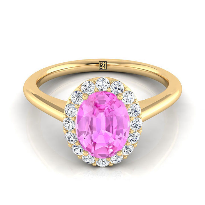 แหวนหมั้นทองคำเหลือง 18K รูปไข่ ประดับแซฟไฟร์สีชมพู พร้อมเพชรล้อมแบบหนีบร่วม - 1/5 กะรัตรวม