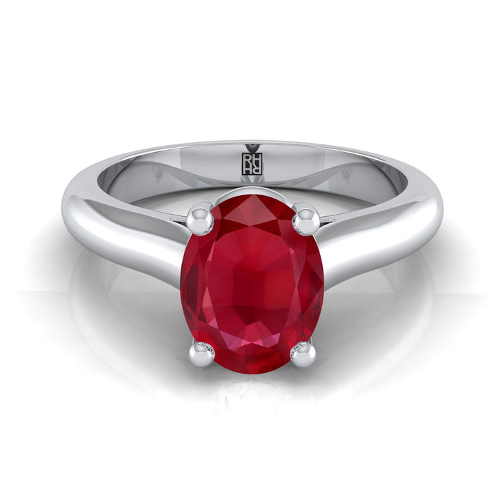 แหวนหมั้นเดี่ยวเม็ดทับทิมรูปวงรีทองคำขาว 14K ดีไซน์หนีบสบายแบบก้ามปู
