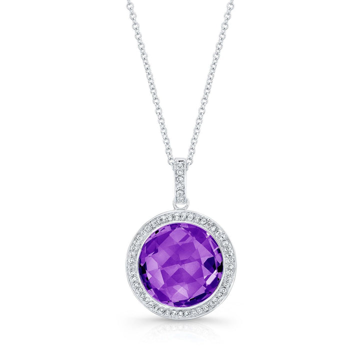 จี้วงแหวนล้อมเพชรทรงกลมลายตารางหมากรุกประดับอเมทิสต์และเพชรในทองคำขาว 14k (si)