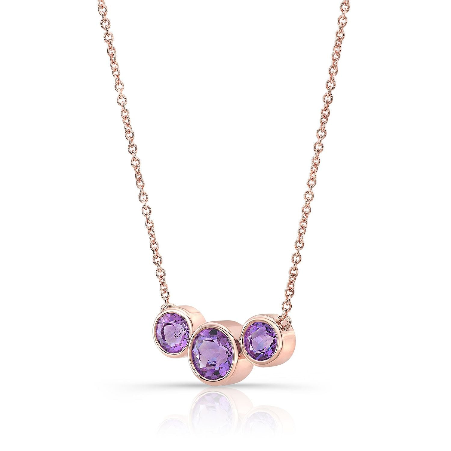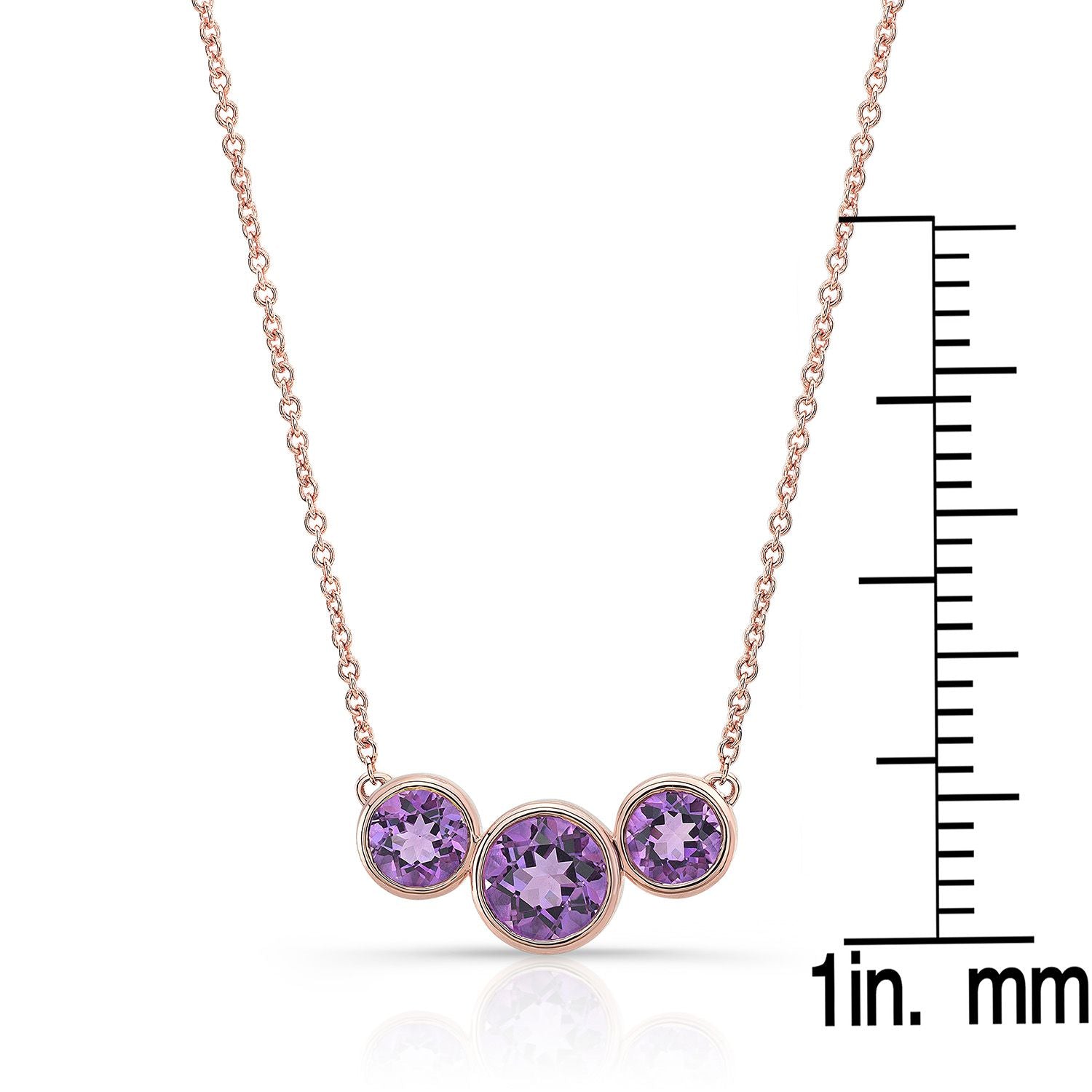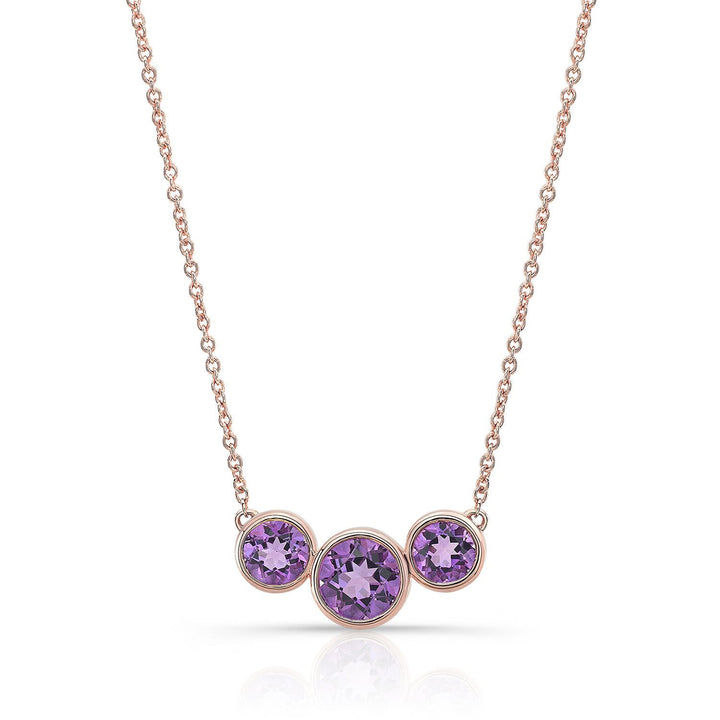 สร้อยคอวงกลมสามเม็ดอเมทิสต์ในทองกุหลาบ 14k