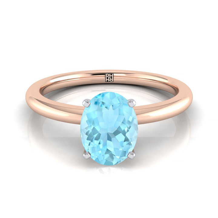 แหวนหมั้นเดี่ยวแบบหนามเตยทรงกลมสวมใส่สบายอควาแมรีนรูปไข่ทองกุหลาบ 14K