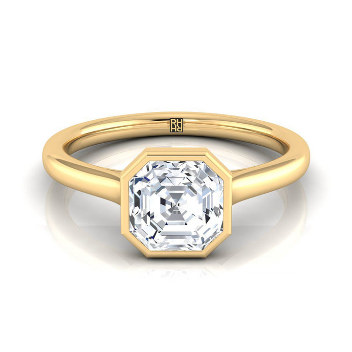 แหวนหมั้นแบบโซลิแทร์ฝังเพชรทรงแอสเชอร์ ตัดขอบแบบเรียบ ทำจากทองคำเหลือง 14K