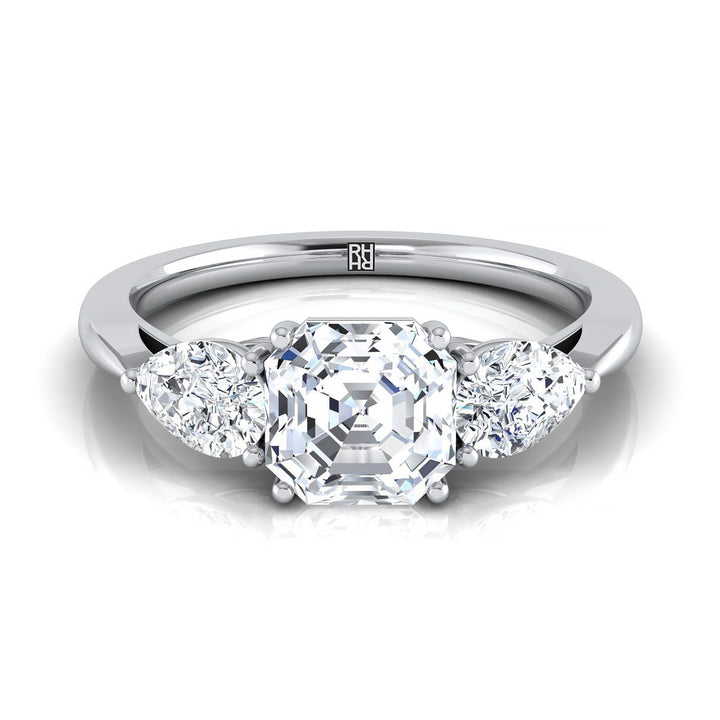 แหวนหมั้นเพชรสามเม็ดรูปทรงลูกแพร์ที่เข้าคู่กันอย่างสมบูรณ์แบบ ตัดแบบแอสเชอร์ ทองคำขาว 18K - 7/8ctw