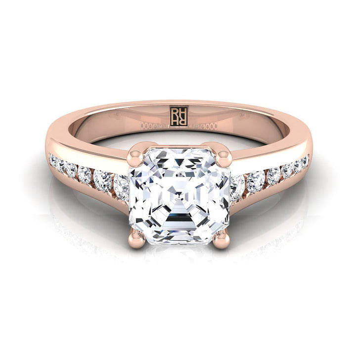 สร้างขึ้นอย่างประณีตในทองคำกุหลาบ 14k แท้, แหวนหมั้นที่มีเพชร Asscher Cut แบบ Channel Set (h-i/vs 0.17 Ct.tw.) นี้สร้างการตั้งค่าที่สมบูรณ์แบบสำหรับเพชรเดี่ยวคลาสสิกที่จะอยู่ได้ตลอดชีวิต.