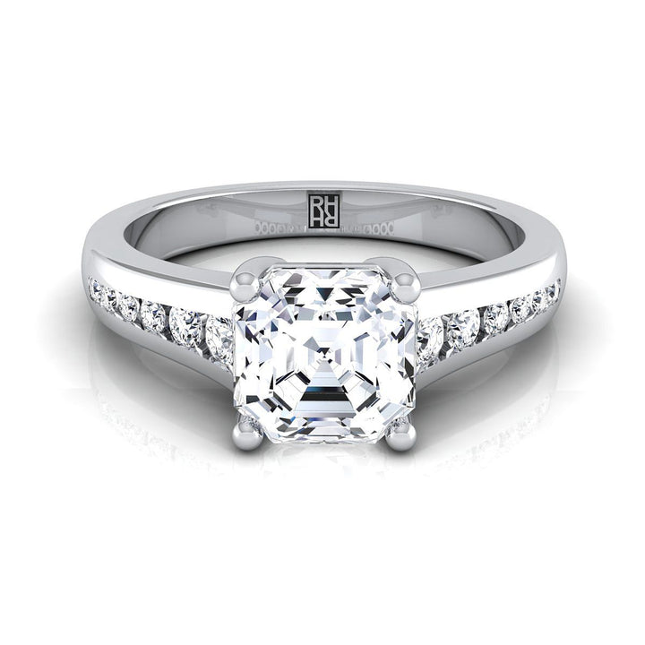 ผลิตด้วยมืออย่างประณีตในทองคำขาวแท้ 14 กะรัต แหวนหมั้นเพชรทรงแอสเชอร์แบบติดตั้งช่อง (h-i/vs 0.17 กะรัตรวม) นี้สร้างการตั้งค่าที่สมบูรณ์แบบสำหรับเพชรเม็ดเดี่ยวคลาสสิกที่จะคงอยู่ตลอดชีวิต