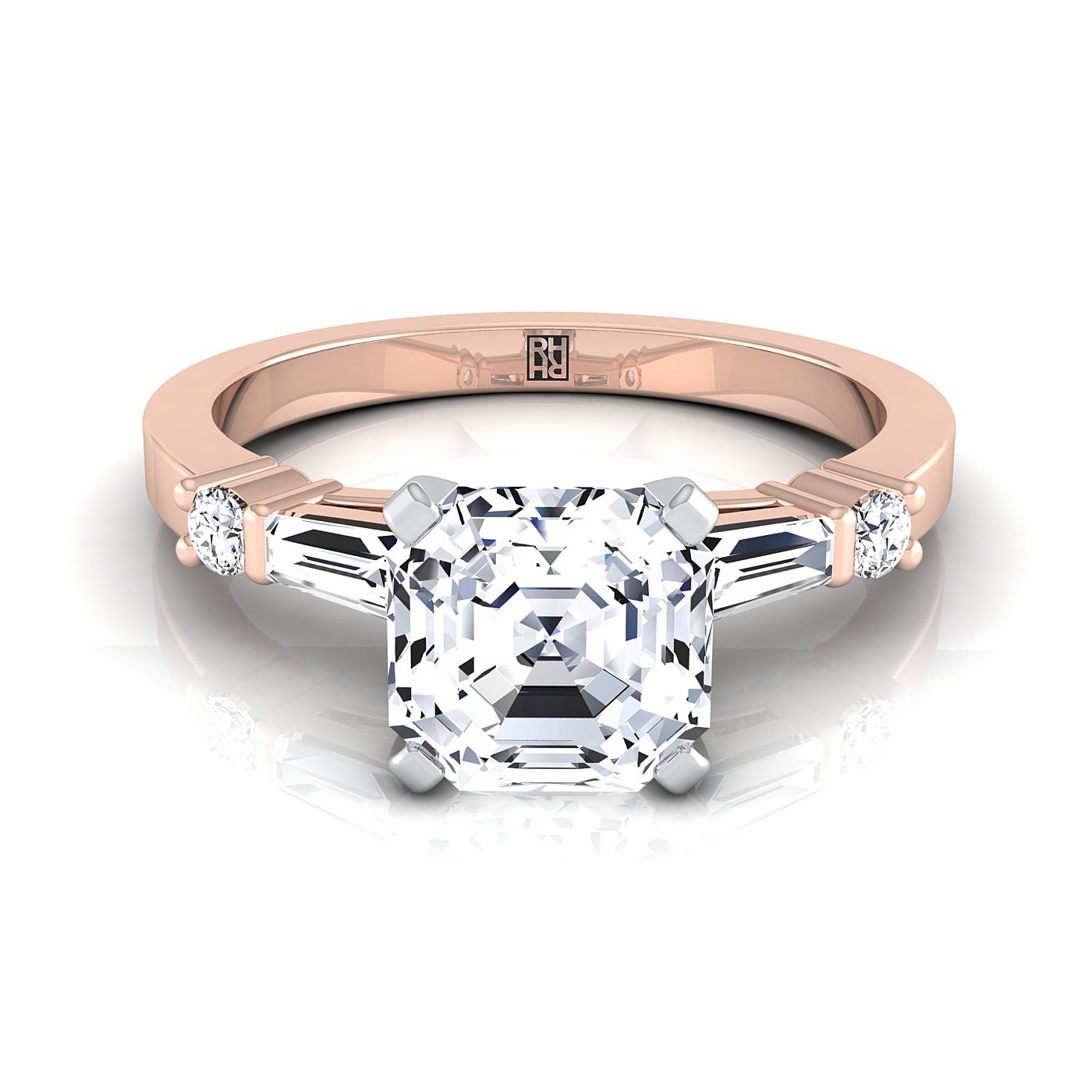 แหวนหมั้นเพชรทรงแอสเชอร์แบบเรียบง่ายพร้อมเพชรบาเก็ตและกลม 14K สีทองกุหลาบ -1/4ctw