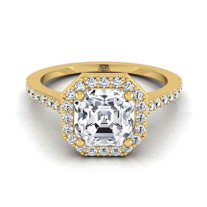 แหวนหมั้นทองคำเหลือง 14K แบบแอสเชอร์คัทคลาสสิก ฝรั่งเศสประดับเพชรแบบพาเว่และฮาโลว์เส้นตรง - 1/3 กะรัตรวม