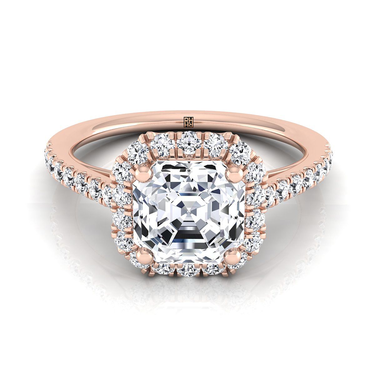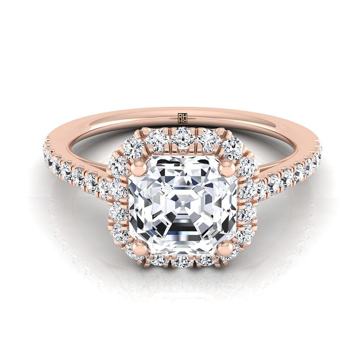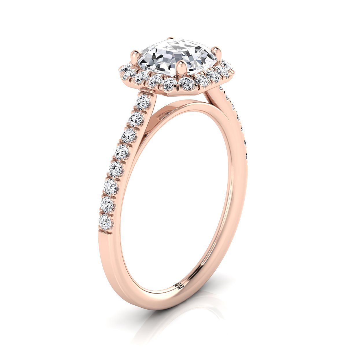 แหวนหมั้นเพชรทรงแอสเชอร์ขนาดเล็กแบบฮาโล่ฝรั่งเศสทองคำชมพู 14K -3/8ctw