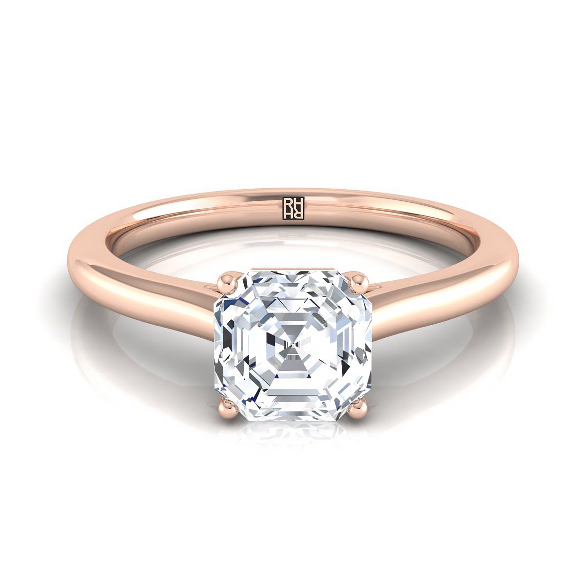 ความสง่างามที่ปราณีต แหวนหมั้นเพชรเดี่ยวแบบ Asscher Cut นี้มีการจัดวางในรูปแบบ Cathedral พร้อมกับแถบที่โค้งครึ่งในทองคำกุหลาบ 14k.