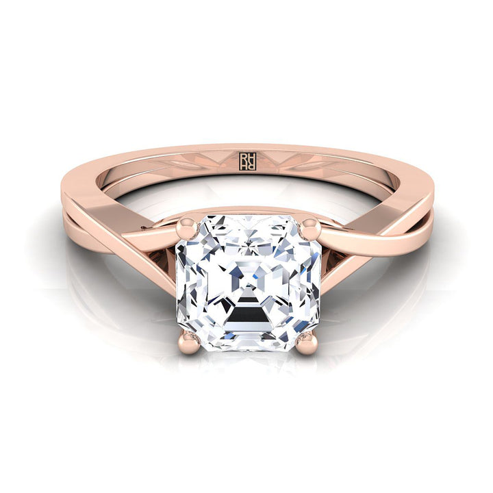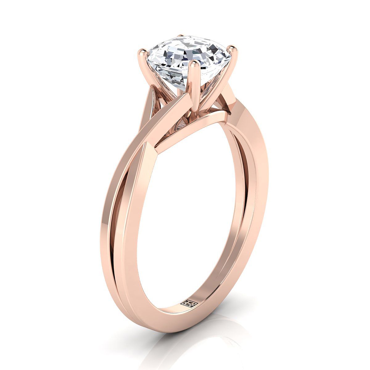 แหวนหมั้นเดลิเคตทวิสต์แบบโซลิแทร์ตัดแอสเชอร์ทองคำชมพู 14K