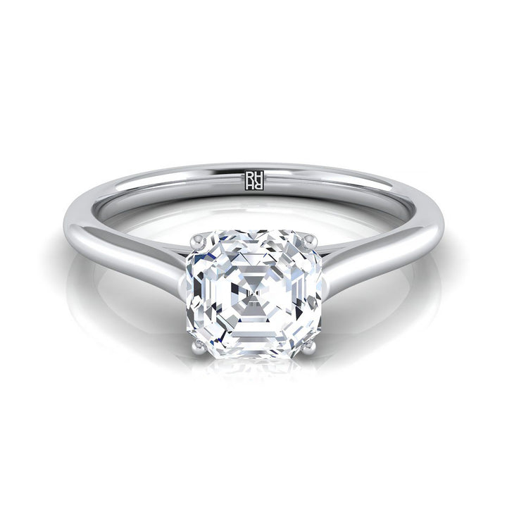 แหวนหมั้นเดี่ยวแบบแอสเชอร์คัตสไตล์วิหารทองคำขาว 14K แบบสวมใส่สบาย