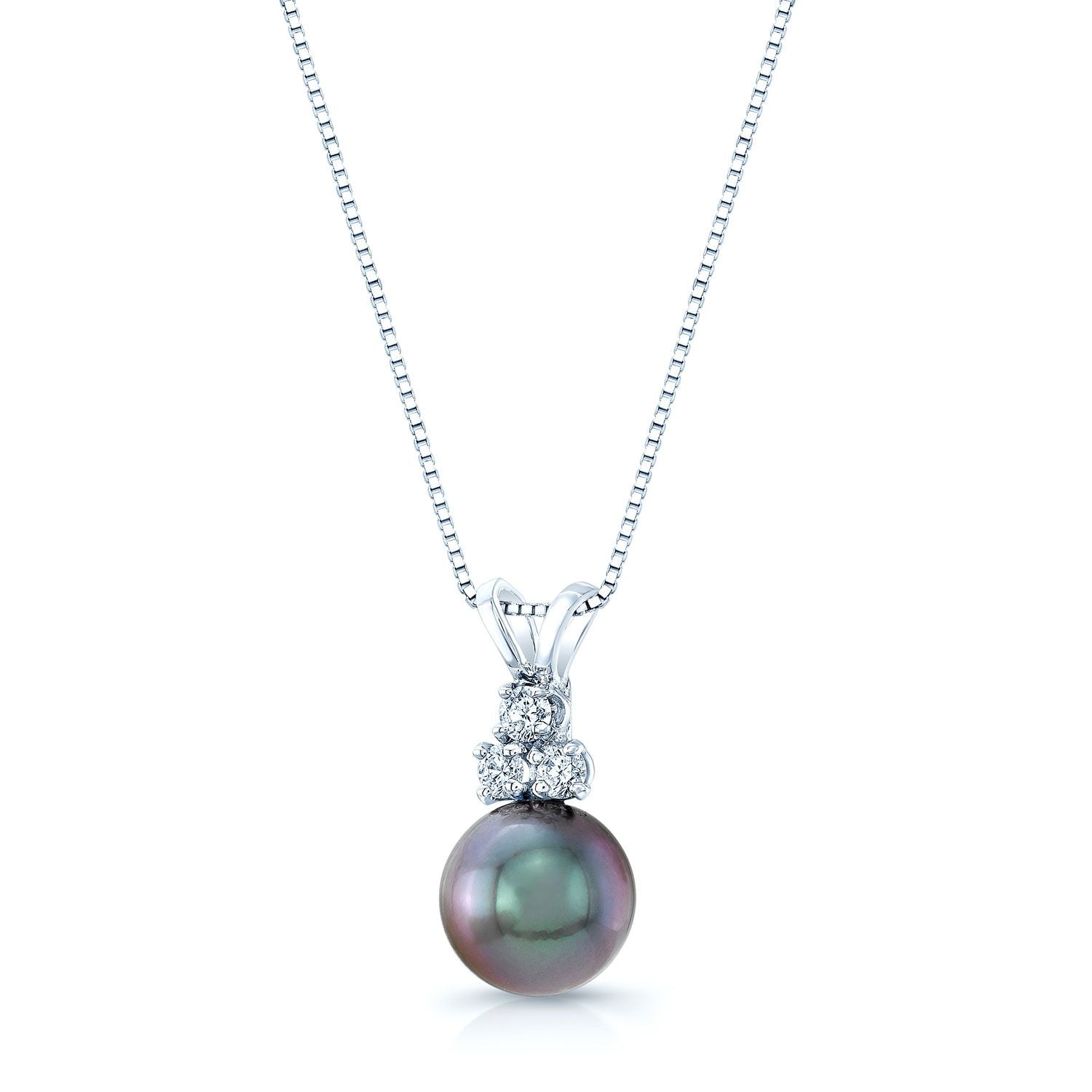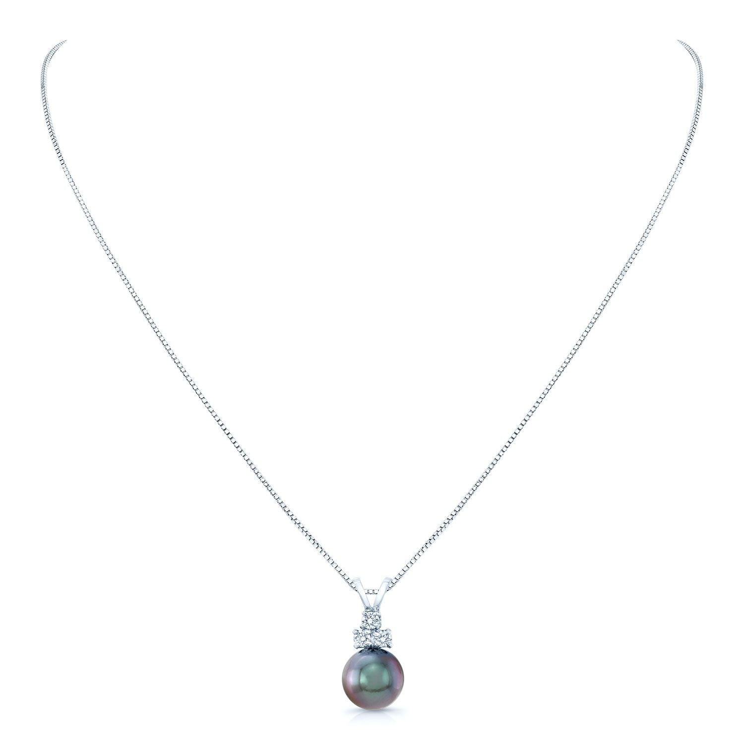 14kw 9-10มม. ไข่มุกทาฮิติสีดำ 3เม็ด=1/8กะรัต จี้ สร้อยคอกล่อง 17นิ้ว ขั้นต่ำ 0.13