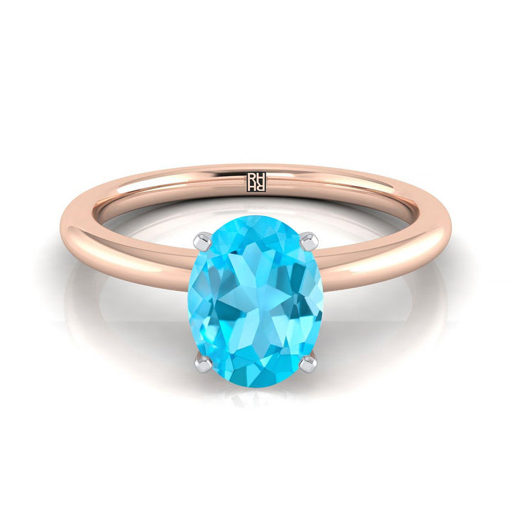 แหวนหมั้นเดี่ยวแบบหนามเตยทรงกลมสวิสบลูโทแพซสีฟ้า รูปไข่ทองกุหลาบ 14K แบบสวมใส่สบาย