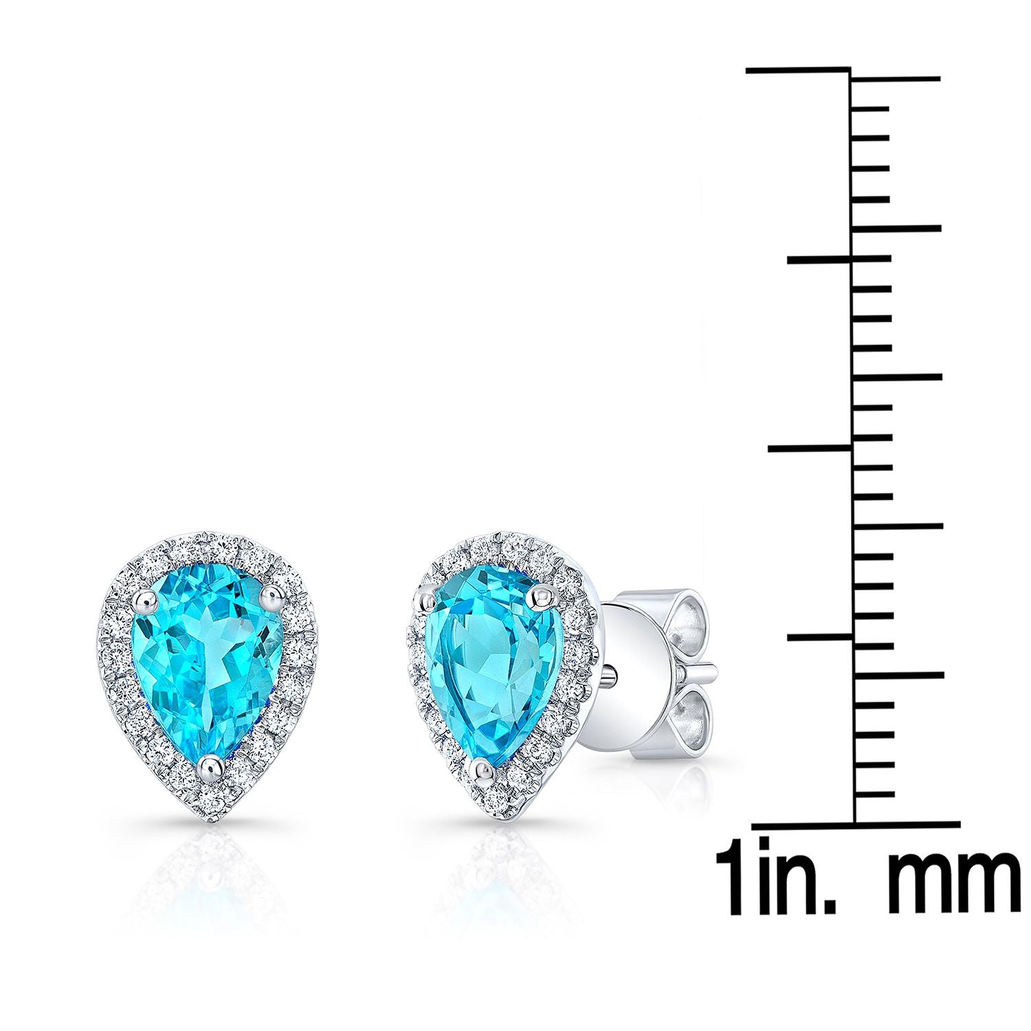 ต่างหูหยดน้ำประดับบลูโทแพซและเพชรแบบฮาโลในทองคำขาว 14 กะรัต 0.18ctw
