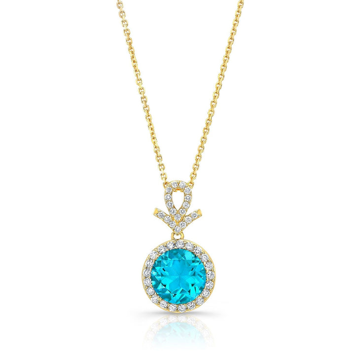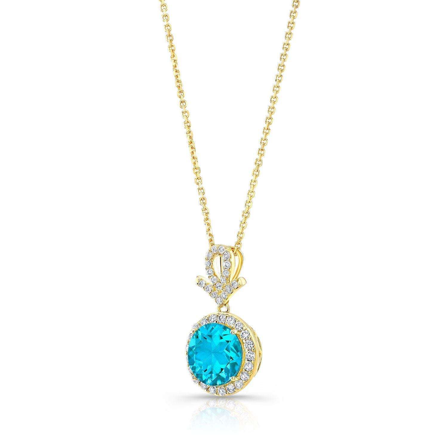 จี้วงแหวนประดับบลูโทแพซและเพชรแบบปาเว่ในทองคำเหลือง 14k