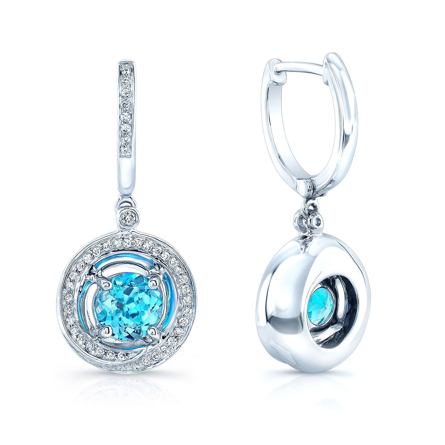 ต่างหูระย้าลายเกลียวประดับบลูโทแพซและเพชรในทองคำขาว 14 กะรัต (6mm)