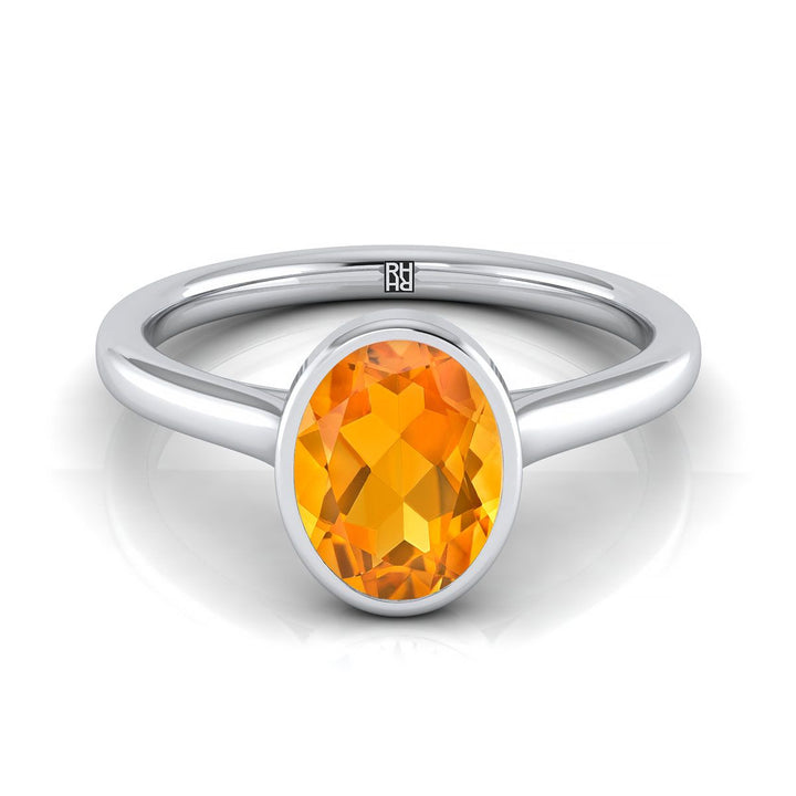 แหวนหมั้นแพลทินัมพร้อมด้วยพลอยซิทรินทรงรีขนาด 8 x 6 มม. ตรงกลางและการตั้งแบบเบเซิลเซ็ตโซลิแทร์