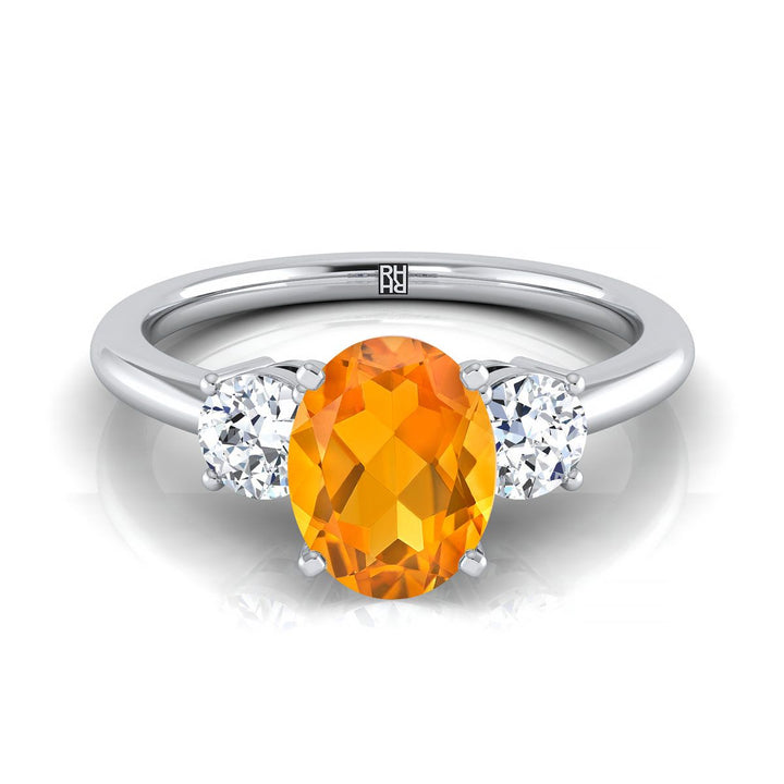 แหวนหมั้นเพชรสามเม็ดทรงกลมที่เข้าคู่กันอย่างสมบูรณ์แบบ ประกอบด้วยซิทรินรูปไข่ทองคำขาว 14K - 1/4 กะรัตรวม