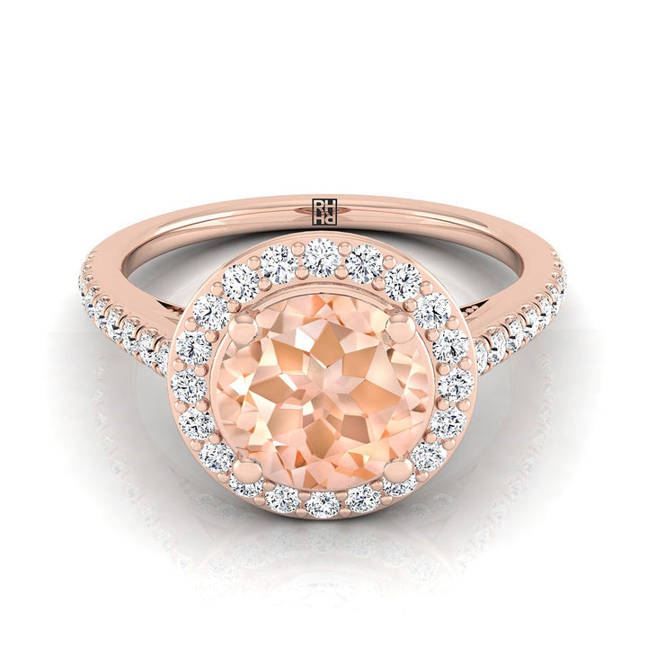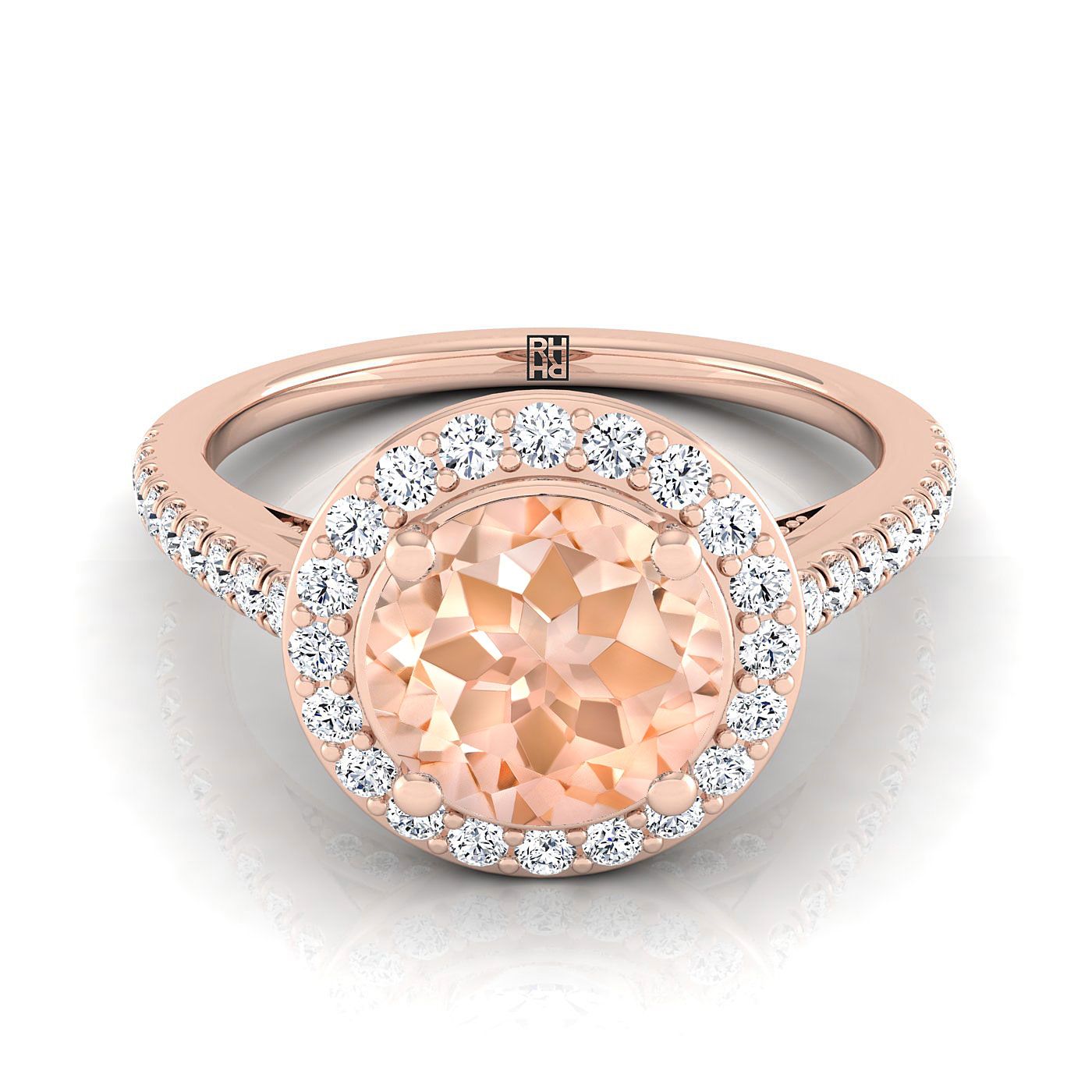 แหวนหมั้นเพชรจาก Secret Gallery ประดับมอร์แกไนต์ทรงกลมเจียระไนแบบ Brilliant สีโรสโกลด์ 14K พร้อมแหวนประดับเพชรแบบ French Pave น้ำหนักรวม 3/8 กะรัต